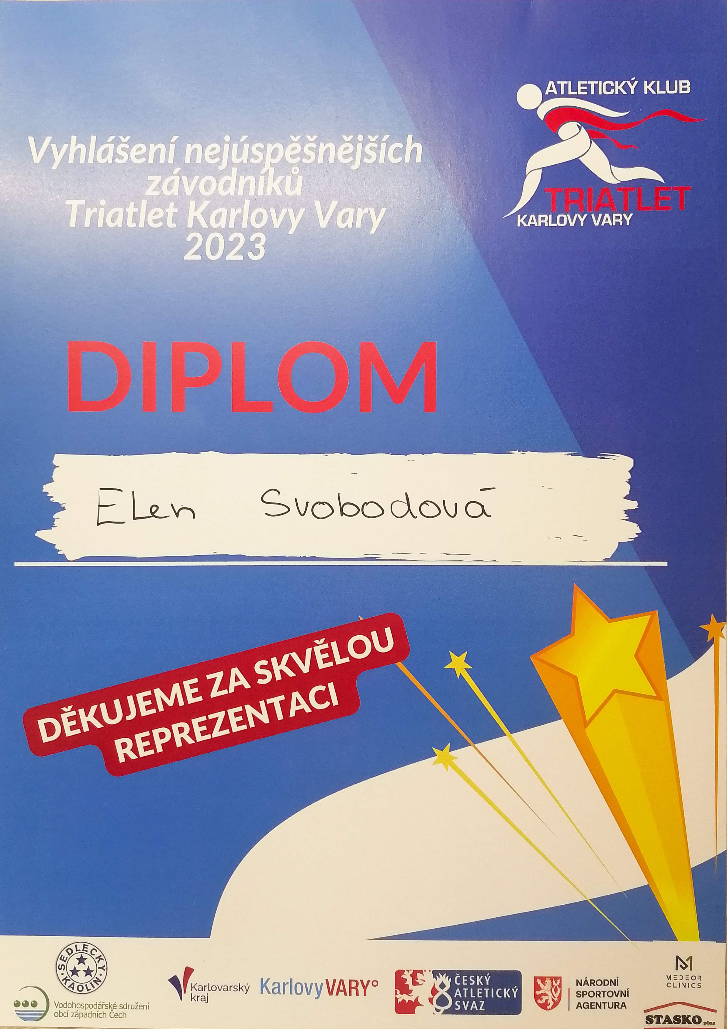 - 29.5.2023 - Sazka Olympijský víceboj – krajské kolo Odznaku všestrannosti na atletickém stadionu v Ostrově. Vyhrála jsem ve své kategorii a postupuji do Republikového finále, které se bude konat v Brně 6.9.-8.9.2023. (výsledky)